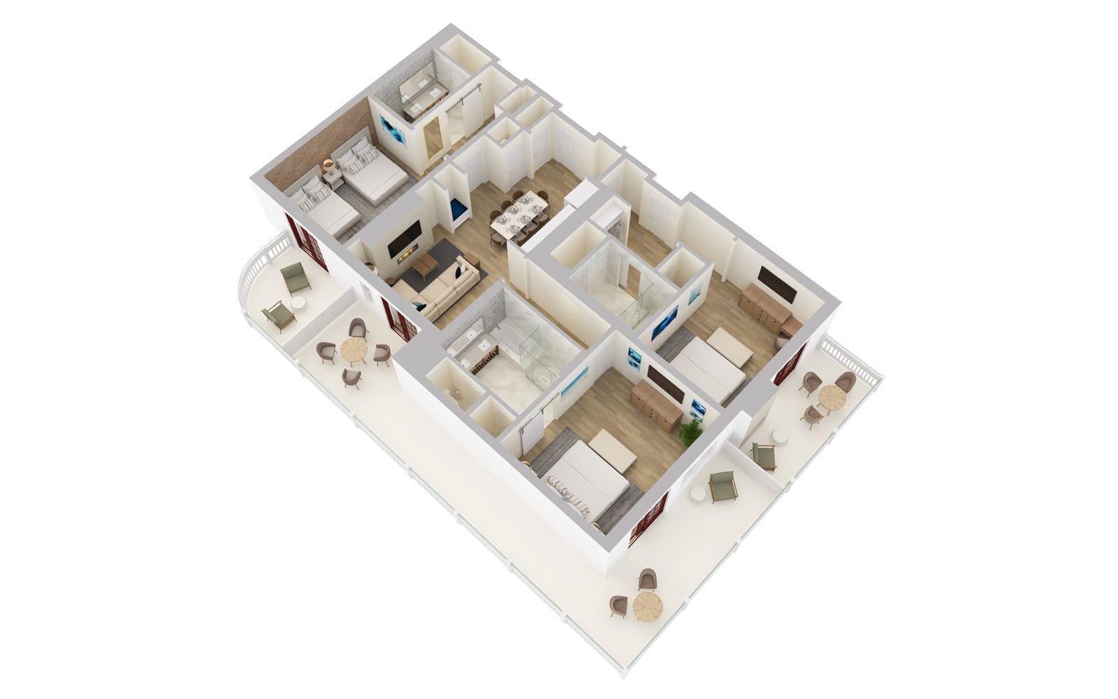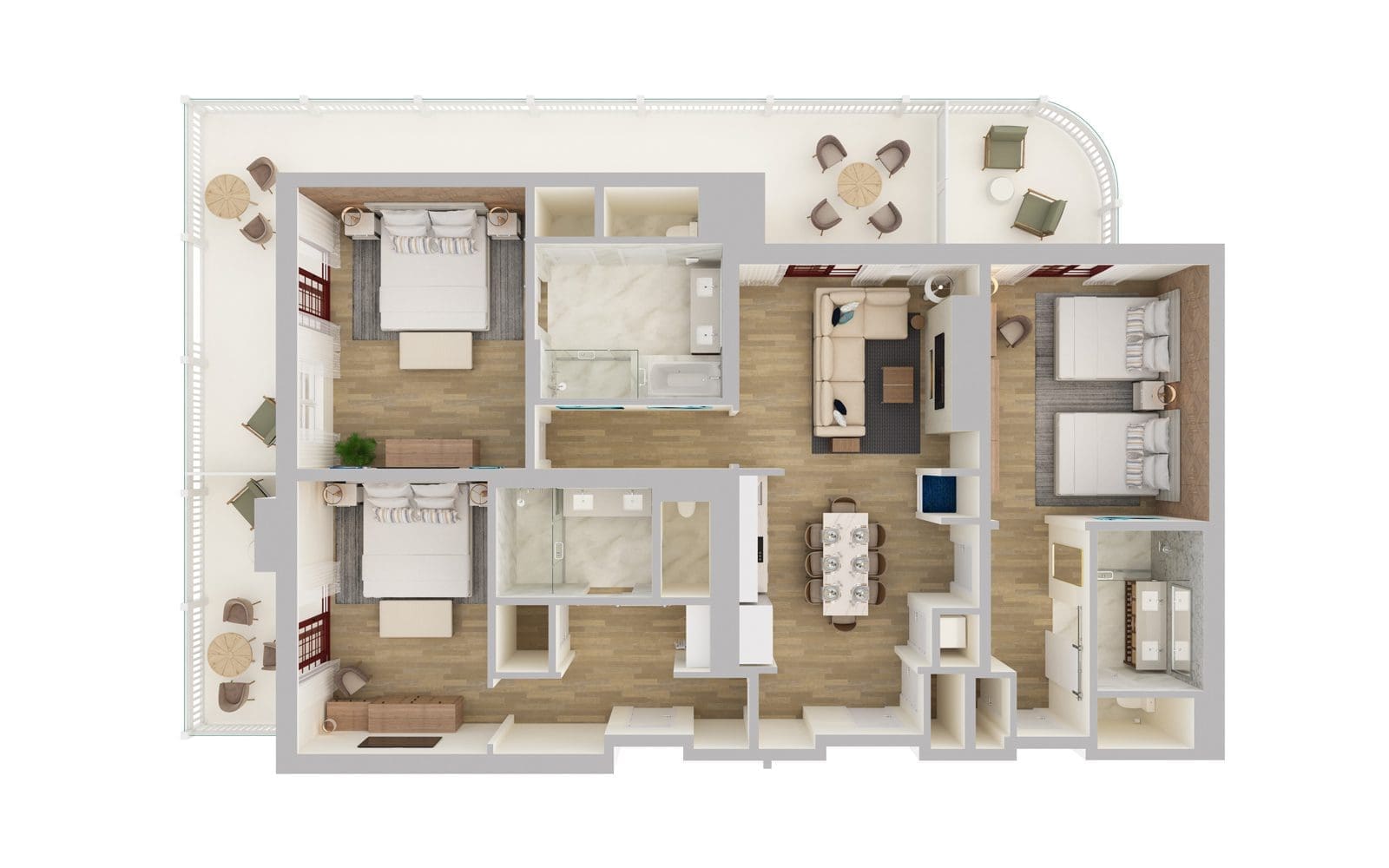 - 1 King Bed + 2 Queen Beds + 1 Queen Sofa Bed